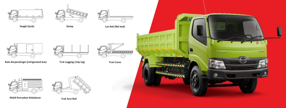 Tampilan eksterior Hino Dutro 300 Series 2026 ditampilkan secara menyeluruh untuk menilai desain, proporsi, serta fitur eksterior yang memengaruhi fungsi dan kenyamanan penggunaan. Detail seperti desain grille, lampu utama, DRL, roof rail, hingga ukuran velg dan ground clearance dapat memberikan gambaran karakter Hino Dutro 300 Series di segmen TRUCK apakah lebih cocok untuk harian di kota, keluarga, atau kebutuhan perjalanan jarak jauh. Informasi visual ini juga membantu melihat pembeda antar Hino Dutro 300 Series 136 HDL 4x4, Hino Dutro 300 Series 136 HDX 4x4, Hino Dutro 300 Series 136 HDL 6x2, Hino Dutro 300 Series 136 HDX Plantation - Euro 4, Hino Dutro 300 Series 136 HDX Mixer - Euro 4, Hino Dutro 300 Series 136 HDL - Euro 4, Hino Dutro 300 Series 136 HDX - Euro 4, Hino Dutro 300 Series 136 MDL STD - Euro 4, Hino Dutro 300 Series 136 MD STD - Euro 4, Hino Dutro 300 Series 136HD - Euro 4, Hino Dutro 300 Series 115HD - Euro 4, Hino Dutro 300 Series 115 LD STD - Euro 4, Hino Dutro 300 Series 115 SDL STD - Euro 4, Hino Dutro 300 Series 115 SDR STD - Euro 4, Hino Dutro 300 Series 136 MDLR, Hino Dutro 300 Series 136 HDX 4x4 M/T, Hino Dutro 300 Series 115 SD STD - Euro 4 secara lebih jelas.