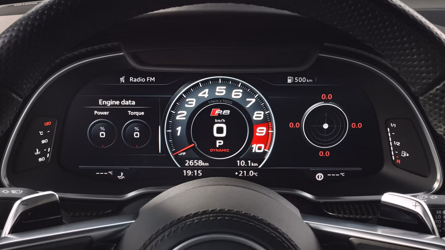 Jelajahi galeri foto eksterior dan interior Audi R8, termasuk pilihan warna terbaru yang dapat membantumu membayangkan tampilannya di dunia nyata. Kami menyertakan contoh dalam berbagai pencahayaan untuk memudahkan keputusan warna. Lihat seluruh album di halaman Galeri.